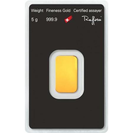 Švajčiarske zlaté zliatky z 24 karátového zlata, certifikované švajčiarskou firmou Argor-Heraeus SA zodpovedajú londýnskemu štandardu Good Delivery a sú preto bez problémov akceptované na všetkých trhoch. Doklady autenticity (logo dodávateľa, rafinérie, unikátne čislo) a váha sú deklarované na vrchnej strane zliatku. Rozmery zliatku 5g sú asi 23 x14 x 1 mm.